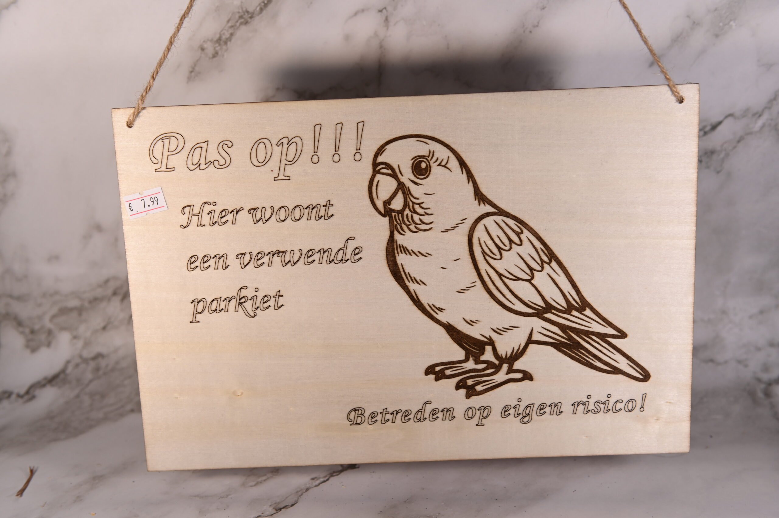 Houten Bord met Gravure – 20 x 30 cm – Parkiet