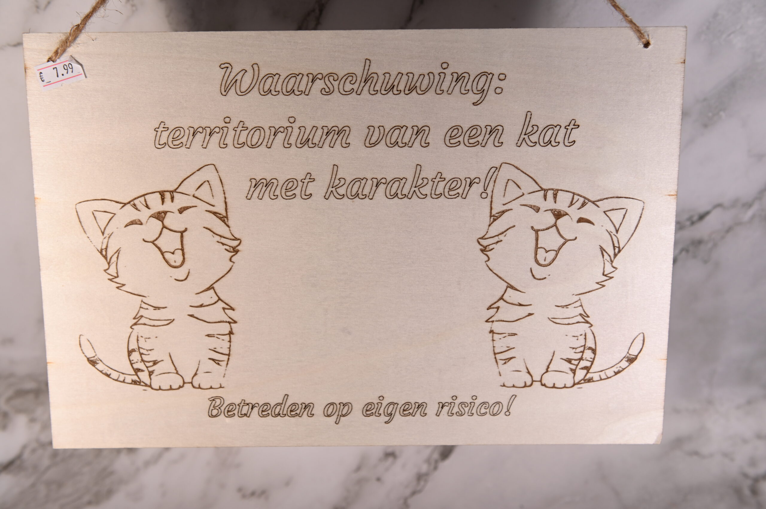Houten Bord met Gravure – 20 x 30 cm – Poesjes